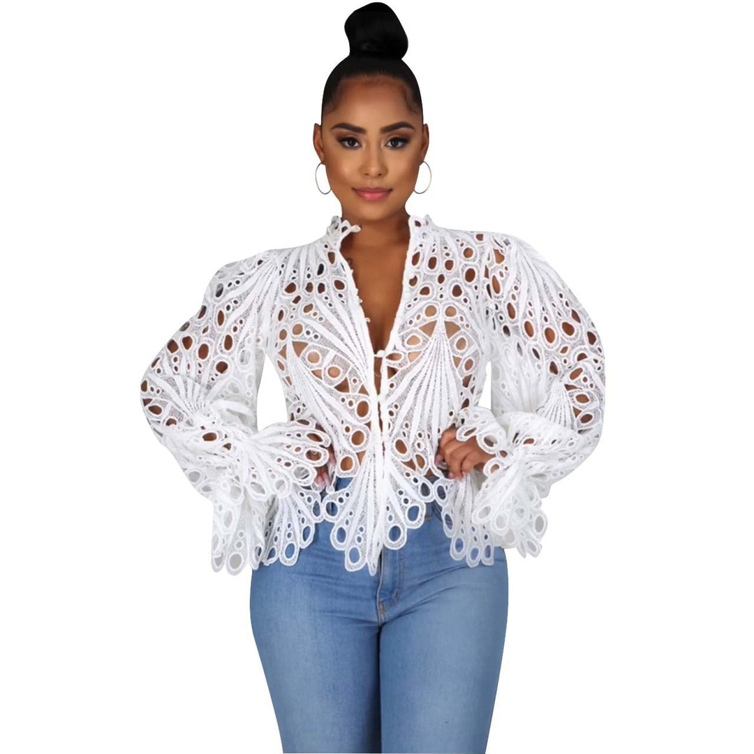 NOVY™ - Lace Mesh Long Sleeve Fitted Blouse